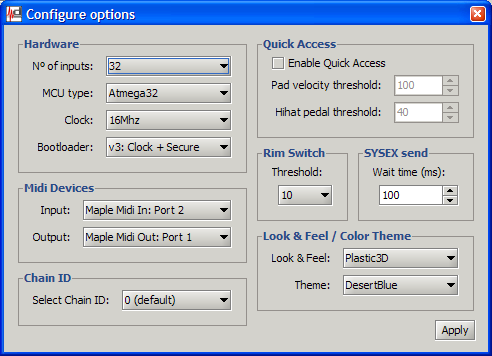 7. Run a MIDI application of your choice and configure it to use 'Maple MIDI In: Port 3' or 'Maple MIDI In: Port 4'. Job is done. You can now simultaneously use MCT to control/configure MegaDrum and use MegaDrum MIDI output in you favourite MIDI application. In fact you can now run two MIDI applications, one using 'Maple MIDI In: Port 3' and another using 'Maple MIDI In: Port 4'