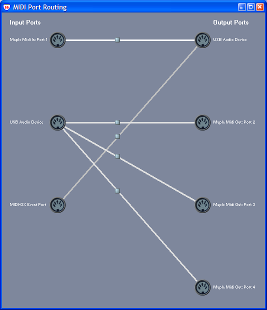 4. Go to View->Port Routings... and configure MIDI routing as shown below: